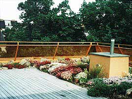intensive dachbegrünung ..empfiehlt sich insbesondere für begehbare Dächer mit intensiver Gartennutzung und ausreichender statischer Belastbarkeit. Die Bepflanzungs- und Gestaltungsmöglichkeiten sind nahezu unbegrenzt: Dachgartentaugliche Rasenflächen, Blütengewächse, Sträucher, Hecken, Kleinbäume, Pergola, Sonnendeck, Holzterrasse, Pavillon, Zierteich, Wasser, Beleuchtungselemente ... Die Höhe der Vegetationsschicht beträgt mind. 10cm (meist 20 - 60cm) und erfordert eine entsprechend hohe Belastbarkeit der Dachkonstruktion. Der Aufwand für Planung, Ausführung und Pflege richtet sich nach den individuellen Gestaltungswünschen.